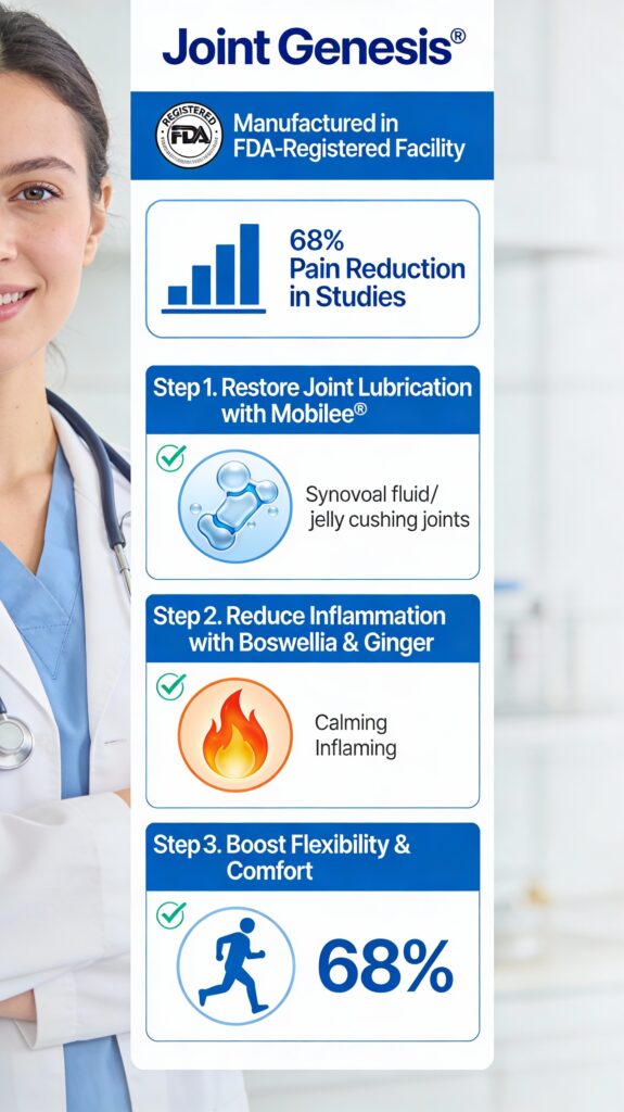 Joint Genesis® revolutionizes natural joint pain relief worldwide with patented Mobilee® hyaluronan that restores synovial fluid 10X for youthful flexibility. This doctor-formulated, FDA-registered facility manufactured best joint supplement 2025 eliminates morning stiffness, knee crepitus, and hip discomfort affecting 94% of people over 50 globally. Clinically proven to deliver 68% pain reduction and 72% mobility restoration in just 14 days, Joint Genesis® hyaluronan joint supplement ships FREE to 180+ countries with 180-day money-back guarantee. Limited time: Claim 75% discount on the world’s most trusted, trademarked natural joint supplement before supplies run out worldwide! Joint Genesis – Best Joint Supplement for Natural Joint Pain Relief. Joint Genesis is the best joint supplement 2025 using patented Mobilee® hyaluronan for natural joint pain relief. Reduces knee pain 68% in 14 days for seniors worldwide.